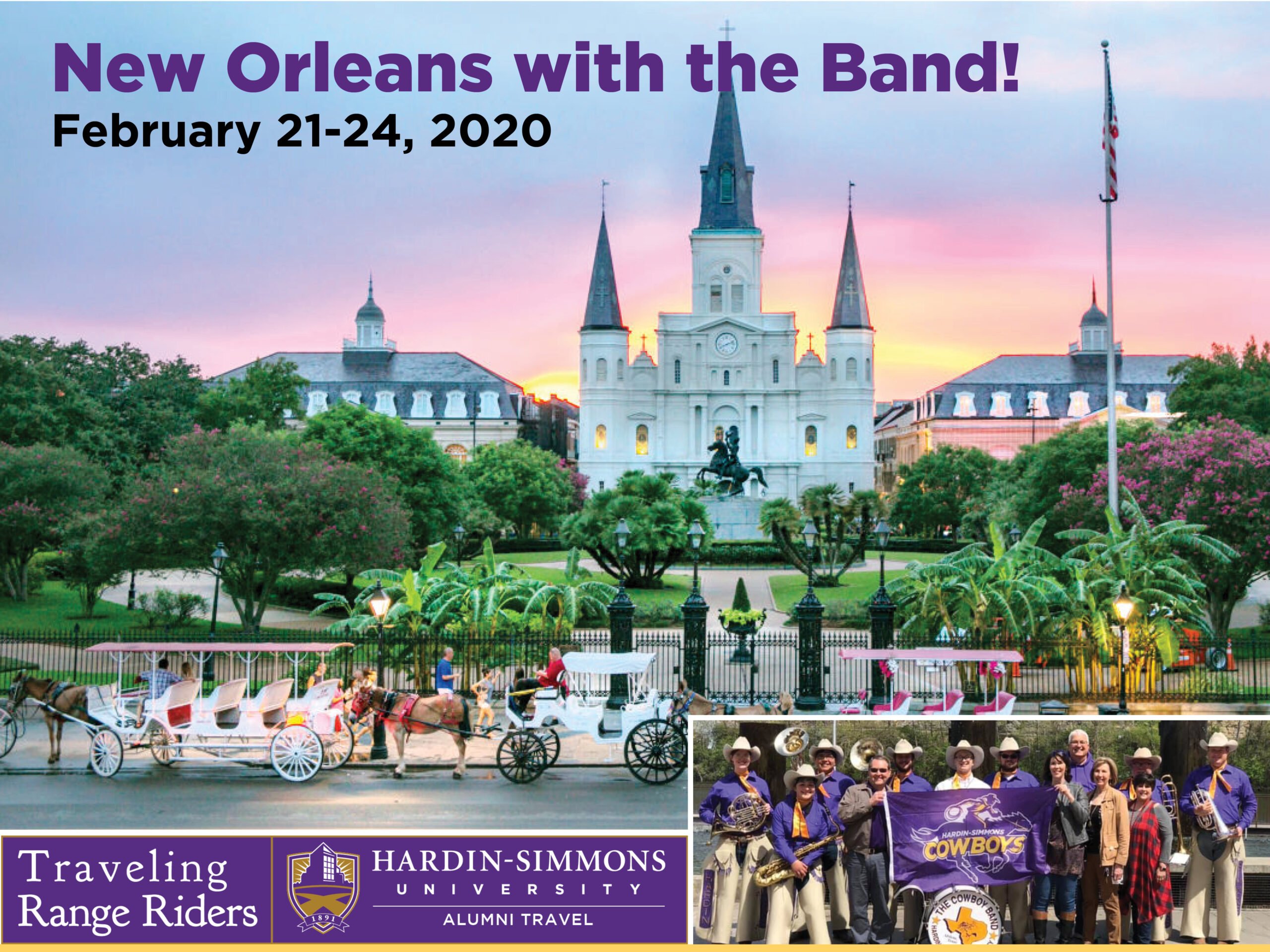 Travel with HSU’s World Famous Cowboy Band to New Orleans for a lively memorable adventure!