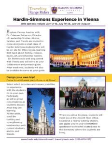 PLAN WITH CONFIDENCE! Receive a complete refund for cancellations made 90+ days before departure. Reserve today online, by calling 866-639-0079, or by contacting Britt Yates Jones ’84 at 325-670-1377 / travel@hsutx.edu.