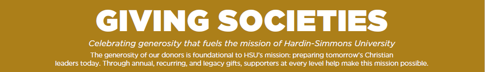 Loyal donors who give consistently over a generational span of 20 years, from the time of their first gift, are honored as lifetime members of the Heritage Society. Loyal donors are the cornerstone of Hardin-Simmons University’s success, providing the means by which HSU can carry out its mission of educating tomorrow’s Christian leaders.